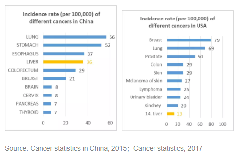 中国是世界上肝癌发病率最高的国家之一,每年新增肝癌患者数量为46万人,超过全世界新增肝癌患者数量的一半。