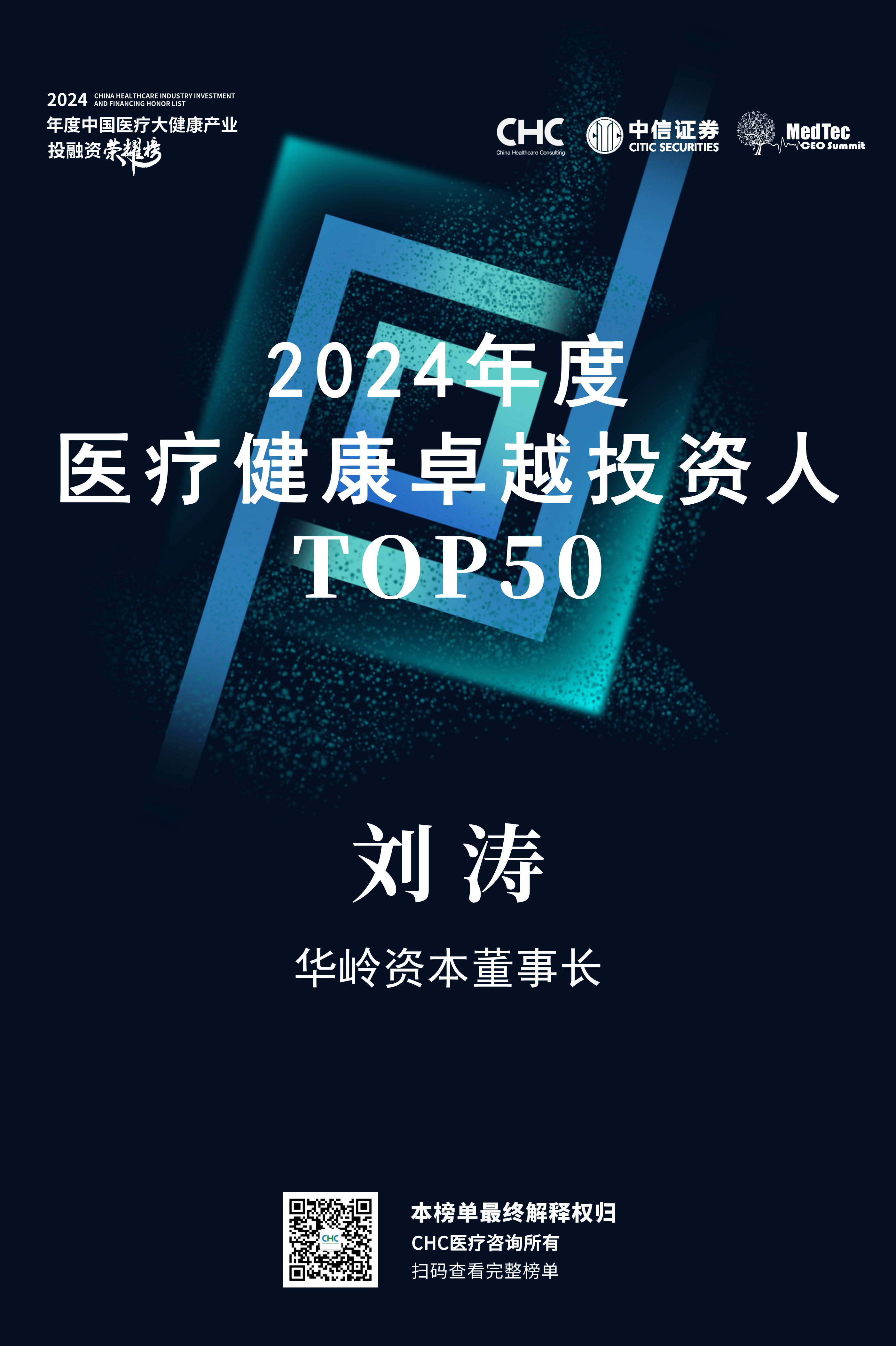 - 2024年度医疗健康领域卓越投资人TOP50(CHC•中信证券评选)