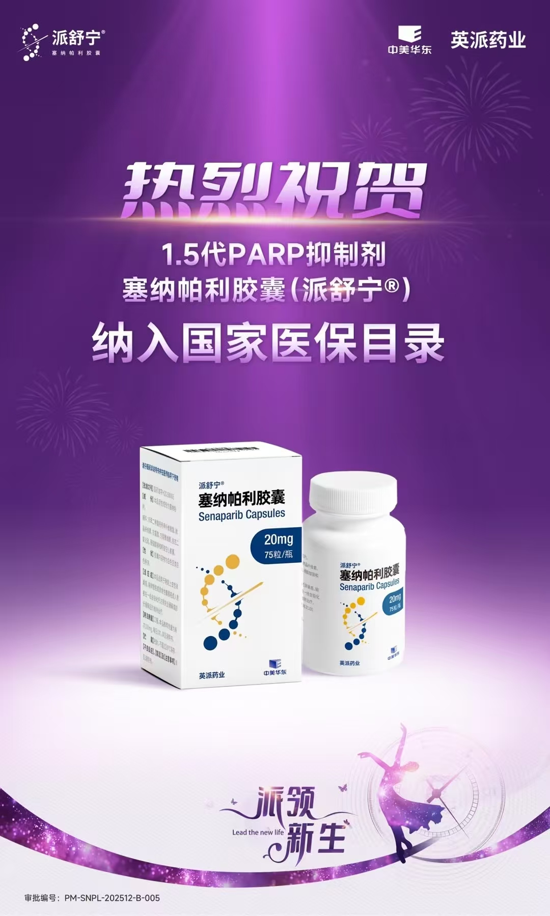中国 上海:2025年12月7日,华岭资本所投企业英派药业宣布,公司自主研发的最新1.5代PARP抑制剂塞纳帕利胶囊(商品名:派舒宁®),其晚期卵巢癌全人群一线维持治疗适应症成功纳入2025年版国家医保目录,新版目录将于2026年1月1日起全面实施。